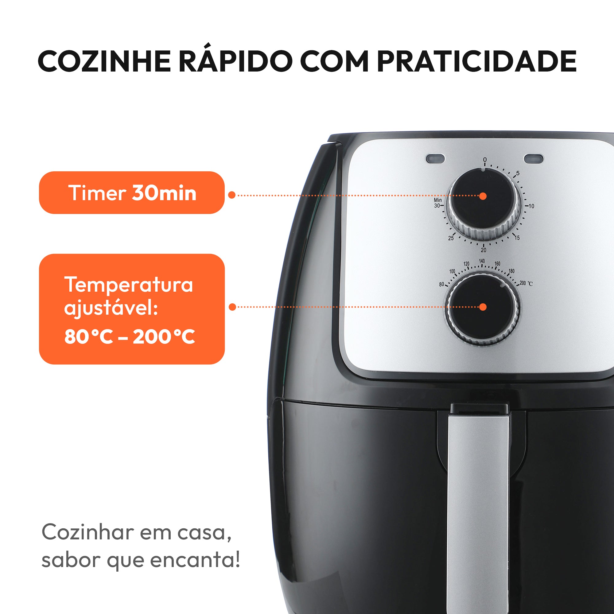 • 3.7L detachable Basket • Adjustable Thermostat Temp. Setting 80℃-200℃ • With 30 Mins Timer Auto Shut Off For Precise Cooking •...