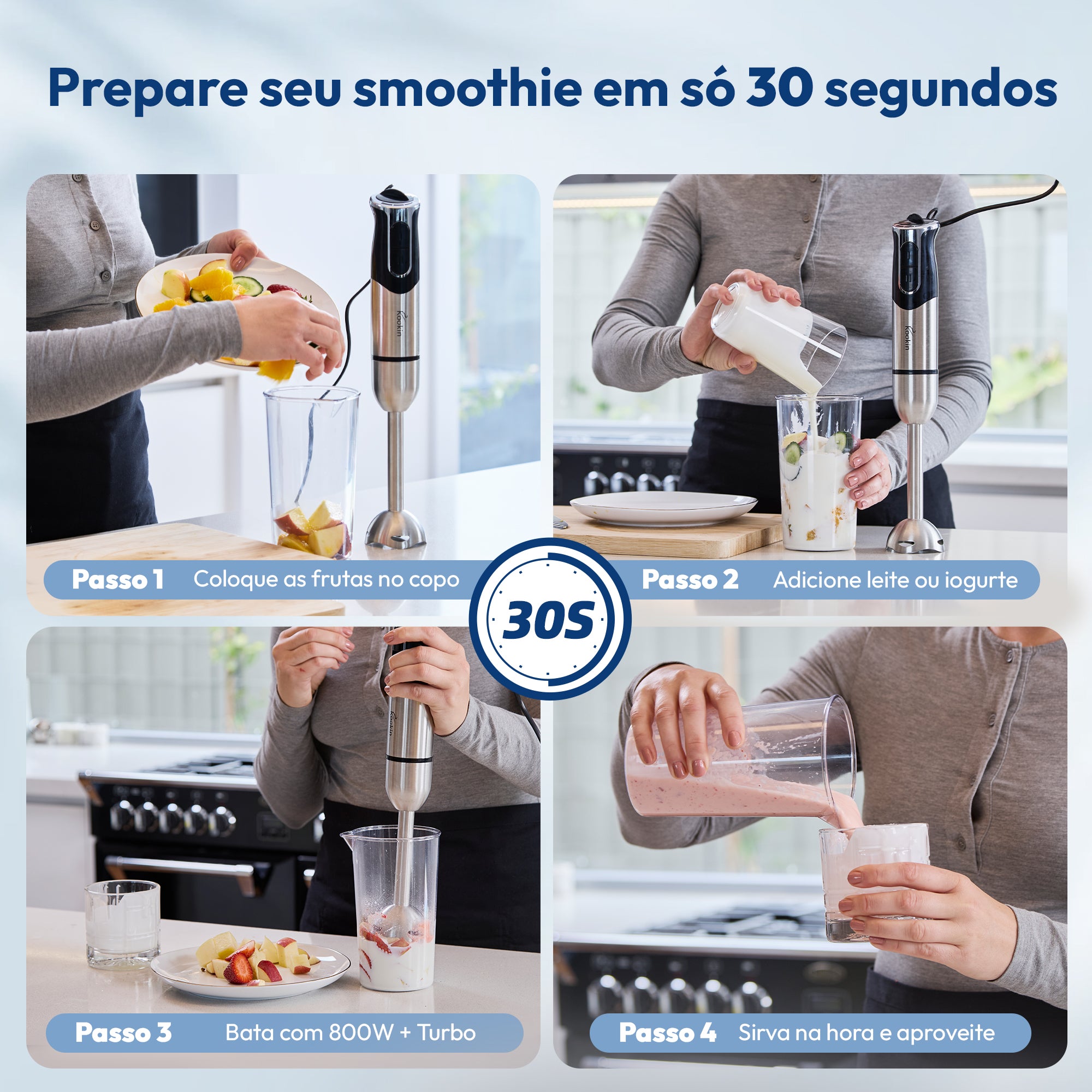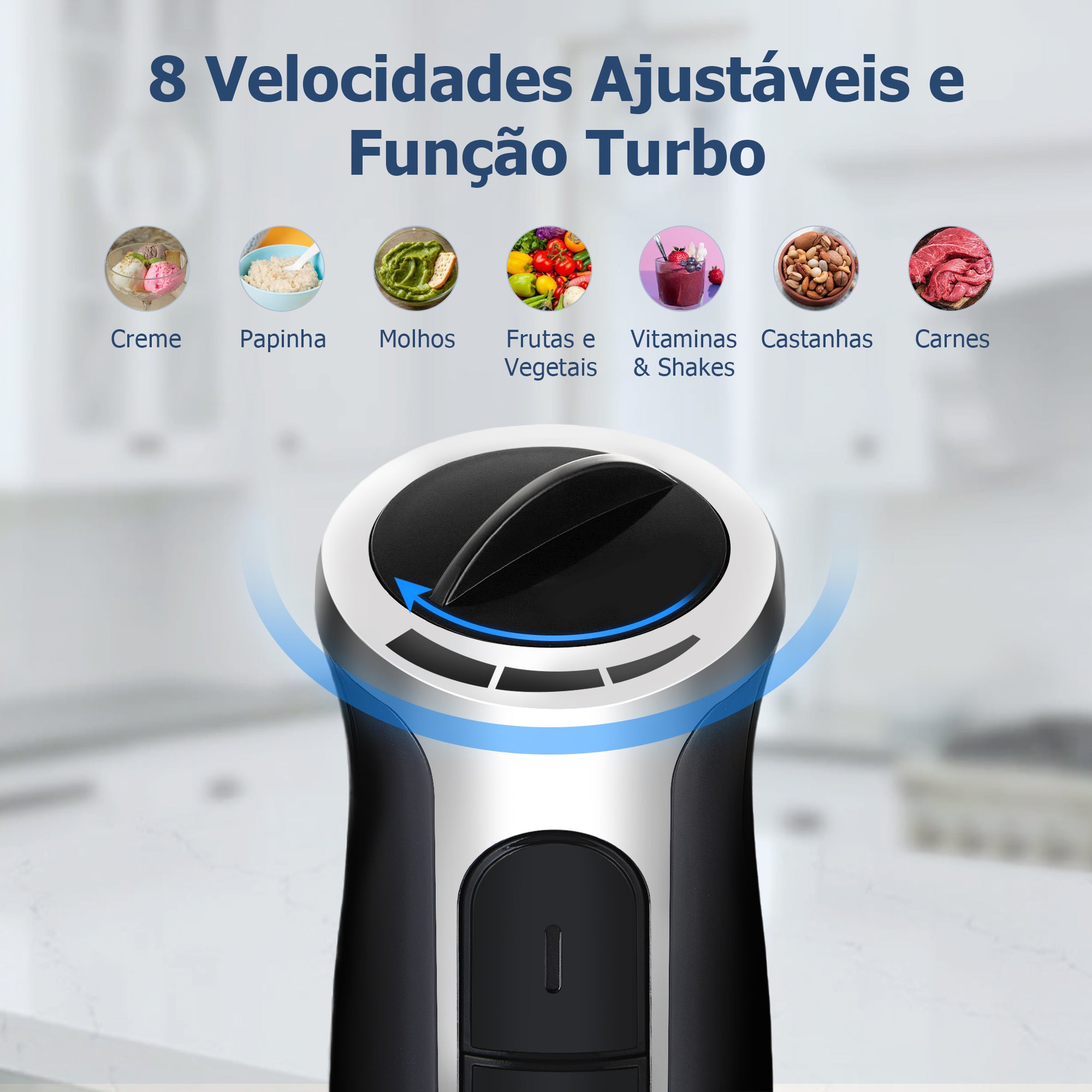 O Mixer de Mão Portátil KOOKIN KNHB1008 oferece potência de 800W com 8 velocidades e modo turbo para máxima versatilidade. Seu corpo...